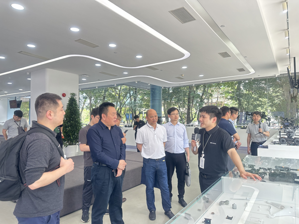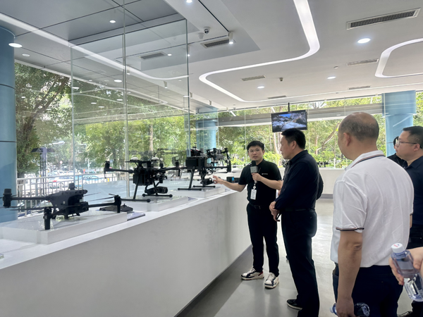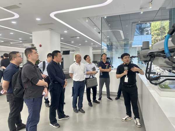 (合影:右七为湖南省自然资源厅地理信息处一级调研员杨水冰在大疆总部调研)