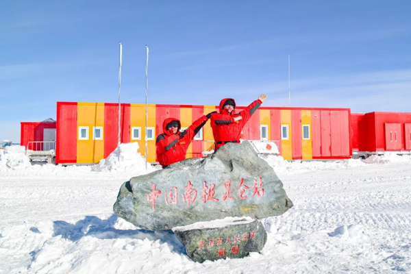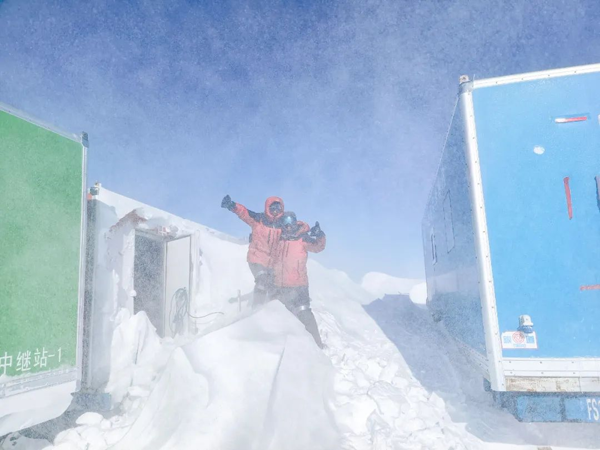 ①科考队员在昆仑站合影②同济大学顾元元与曹哲毅